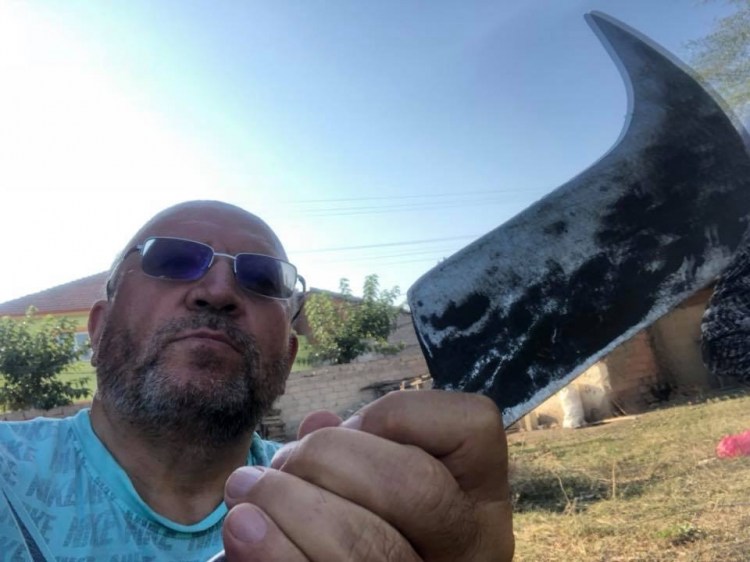 Bu sabah gün doğmadan erken kalktım. “Bismillah “ deyip işe başladım. Elimde gördüğünüz dahra ile pıtırak gibi bahçemizi sarmış dikenli otların hakkından geldim. Çocukluğumda görmediğim top top şeklinde dikenler üstüme başıma sakız gibi yapıştı.. Bunları gören anam yanıma geldi sırtıma sakız gibi yapışan top top dikenleri eline batmasına rağmen temizledi...