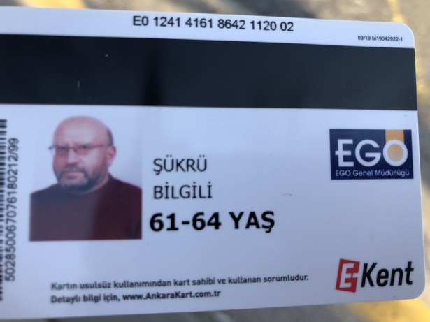 Bugün Ankara Belediyesine ait ”61-64 yaşlılık EGO kartı “ almak için Kızılay Metro altındaki kart merkezine bir resim ve kimliğimle müracaat ettim. On dakika içinde sıram geldi. 127 TL ödedim. İki dakika içinde görevli bir yıl otobüslere ücretsiz binme kartımı elime tutuşturdu. Altmış beş yaşına gelince de hiç ücret ödemeden beleş binecekmişim.