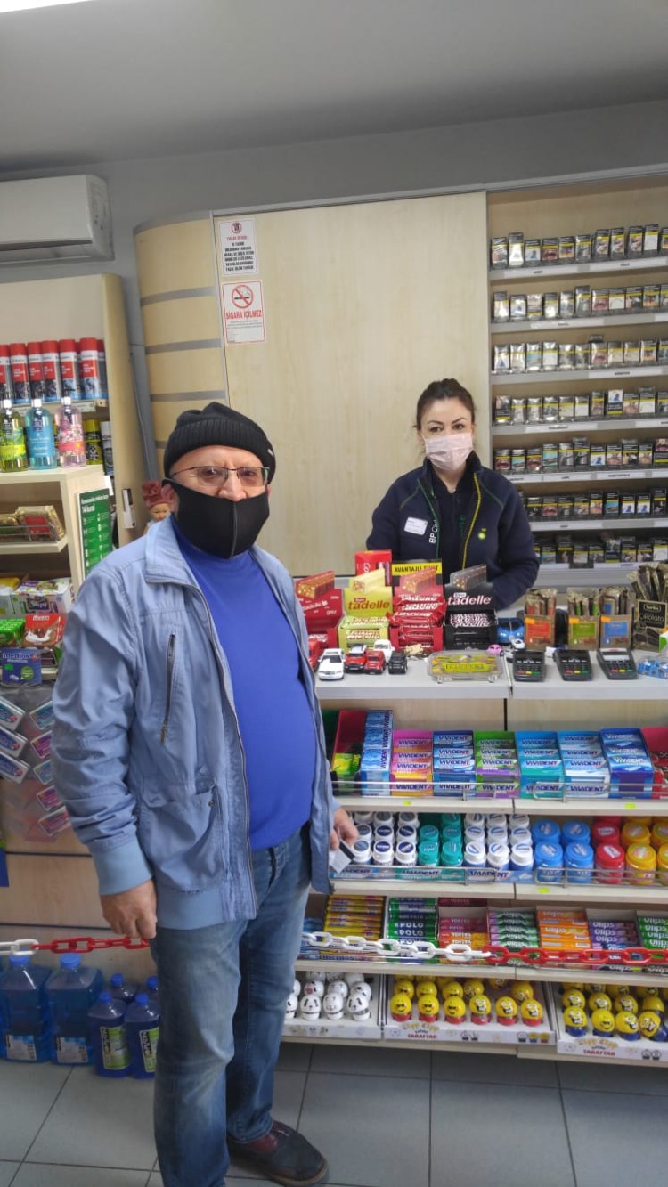 Benzin istasyonuna girdim. Kasiyerde koronavirüs nedeniyle benim gibi maske takmış bir bayan duruyordu. Bayana kartımı uzattım.: